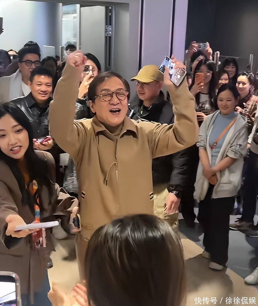 有个大叔拿着二十年前的《红番区》海报来签名,成龙一看就笑了,眼角褶子堆成了花。 诶,你们说,这老爷子是不是吃了长生不老药啊?扫楼是下午两点开始的,成龙穿一件深灰色外套,里面是黑T恤,袖子随便撸到胳膊肘。 那块旧手表我还认得,十年前拍《十二生肖》时就戴着了。 他刚出电梯,保镖想拦着人潮,他直接摆手说“别挤着孩子们”,自己往人群里走。 有个戴眼镜的女生把手机递过去,成龙接过来的时候,我瞄见他手指关节有点肿,但握得特别牢。 他喊着“321笑一个”,连拍三张,还换位置照顾角落的人。 拍完把手机还回去,那女生手抖得差点没拿住。